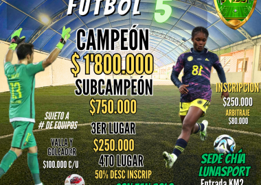 🔰TORNEO MIXTO CHÍA FUT5 NLS 🔰 🏟SEDE CHÍA / LUNASPORT 🗓JUEGA SÁBADO O DOMINGOS O ENTRE SEMANA (LUNES-MARTES) ⚽TORNEO AFICIONADO-SIN PROFESIONALES 🤑INCREÍBLES PREMIACIONES 💰 EN EFECTIVO Y DE...